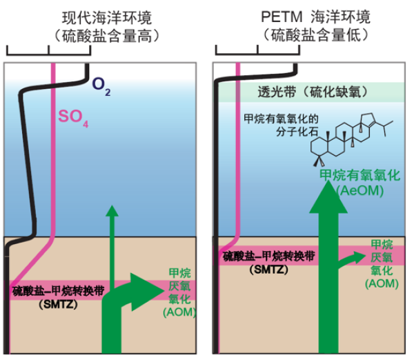 PETM时期北极海洋甲烷氧化路径转变概念图。研究团队供图